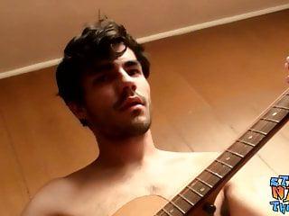 Ein hetero Musiker spielt erst auf der Gitarre und dann mit seinem Schwanz