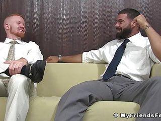 Rotschopf leckt seinem Freund die Füße und Zehen bevor er die Spermaladung aufs Gesicht bekommt