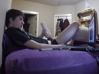 Ein junger hübscher Mann der seinen dicken Penis würgt bis zum Cumshot